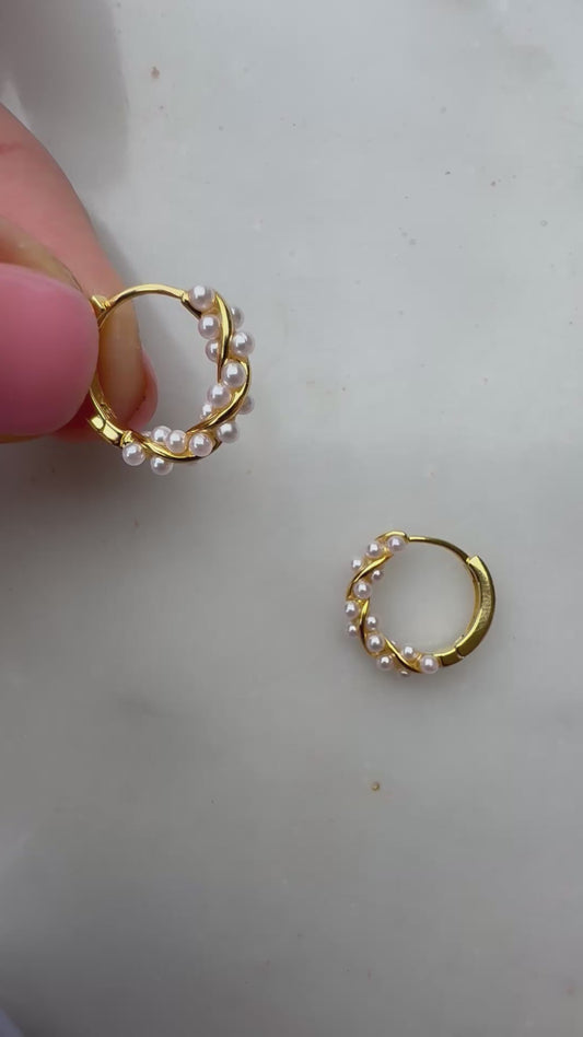 Ané Pearl Huggie Earrings.