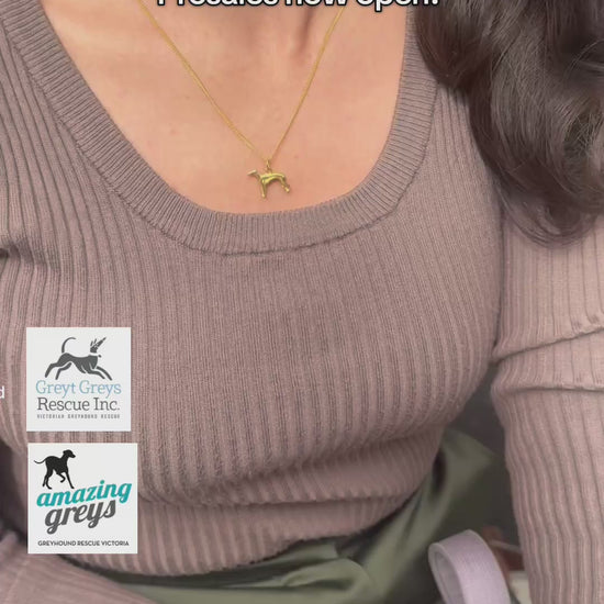 The Greyhound Rescue Pendant and Chain is a sophisticated tribute to the grace, resilience and strength of our beloved rescued greyhounds and all those who have fallen to tragedy as a result of the Greyhound racing Industry.